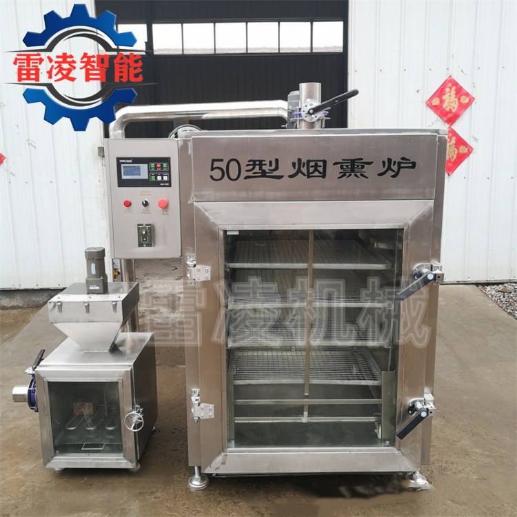 牛肉干煙熏爐:煙熏爐具有烘烤,煙熏,上色,蒸煮的功能。全自動(dòng)觸摸屏電腦控制板,操作簡(jiǎn)單,只需設(shè)定溫度時(shí)間就可以,有上色均勻,代替人工,節(jié)省時(shí)間等優(yōu)點(diǎn)。