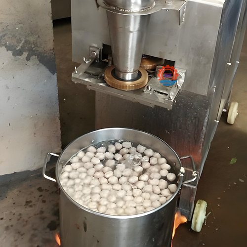 2、只要把肉漿放入料斗內,開機2-3分鐘即可自動制成肉丸,制品口感爽脆,味道鮮美,有彈性,色澤潔白。