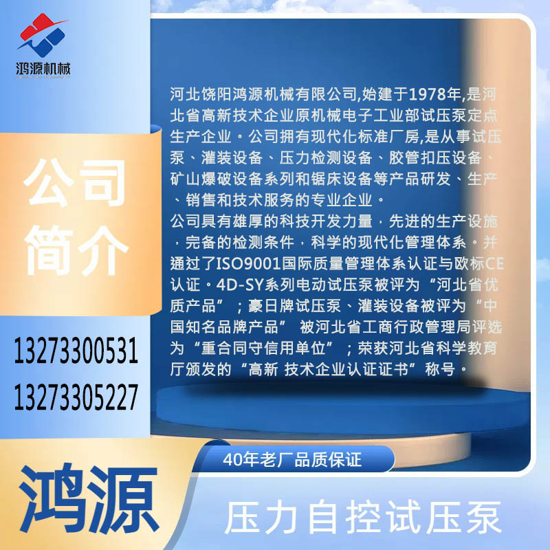 2D-SY型(6.3—80MPa)電動試壓泵,主要使用于各類壓力容器、氧氣瓶、管道、閥門、蒸氣鍋爐等作水壓試驗,予應(yīng)力加工新工藝和試驗室中獲得液體高壓源的設(shè)備。