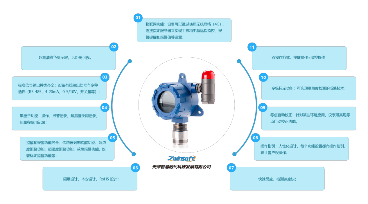 ZWIN-ESG1006氣體報警器具有現(xiàn)場監(jiān)測氣體濃度顯示、信號傳輸、LED燈和繼電器報警功能將現(xiàn)場檢測到的氣體濃度轉(zhuǎn)化為相應(yīng)的標(biāo)準(zhǔn)信號,然后將信號傳輸?shù)缴衔粰C,如PLC、DCS報警控制主機,進行統(tǒng)一顯示管理和控制。帶顯示的氫氣檢測儀內(nèi)部裝有繼電器,可以聯(lián)動控制其他設(shè)備。