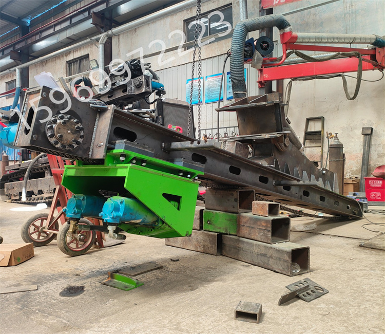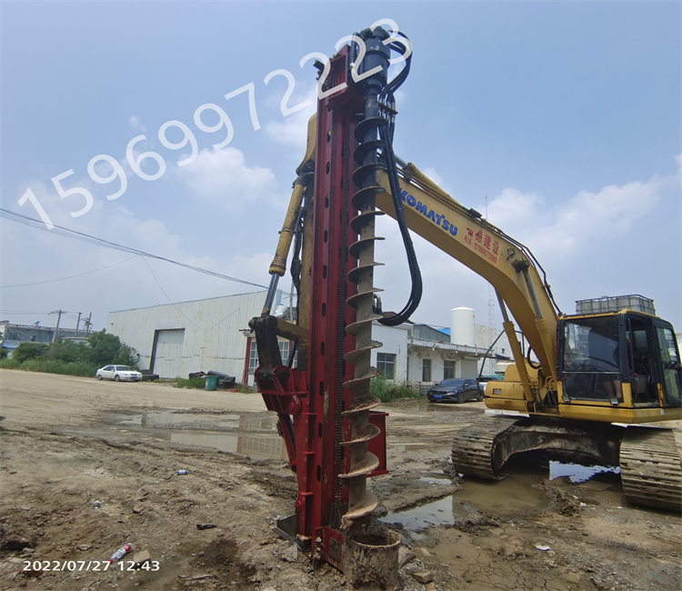 前后左右自由伸展,當(dāng)挖掘機(jī)在工地不平坦的情況下,挖機(jī)手可根據(jù)位置不同調(diào)整鉆桿角度保持90垂直鉆孔