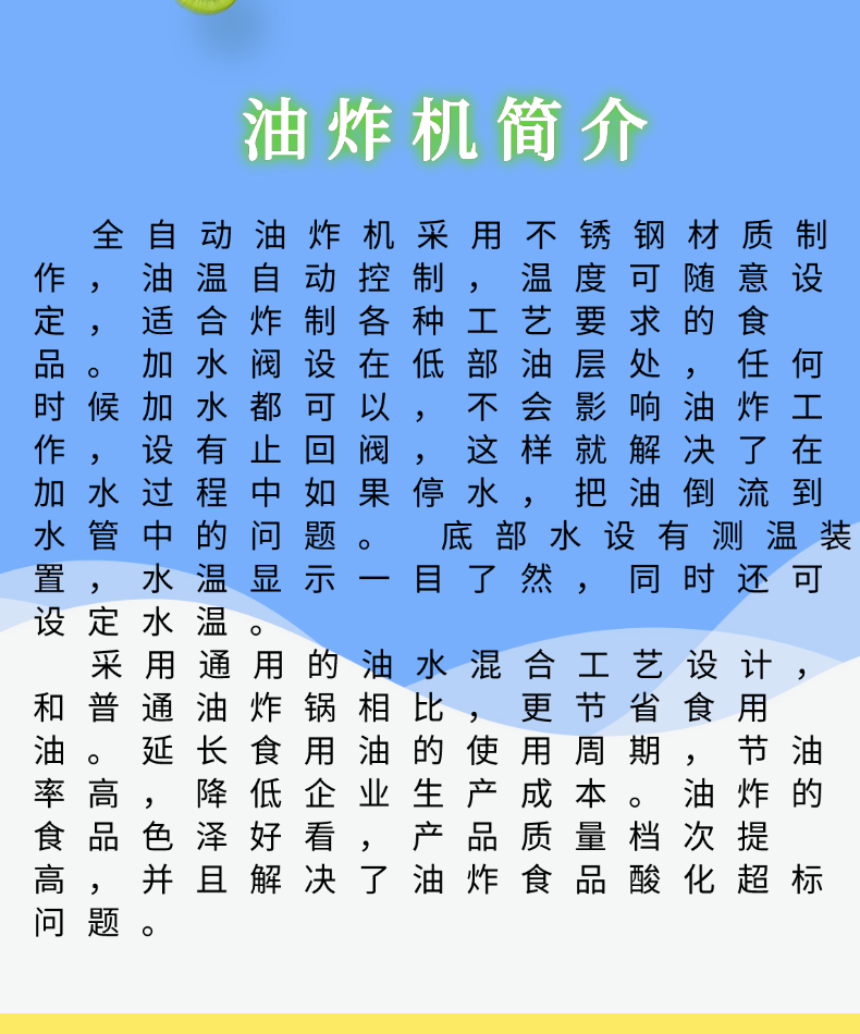 智能控制:配備智能化溫控系統(tǒng),能夠精確控制油炸溫度與時(shí)間,減少因操作不當(dāng)導(dǎo)致的食品質(zhì)量下降。