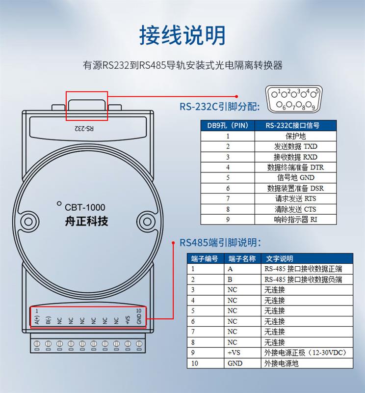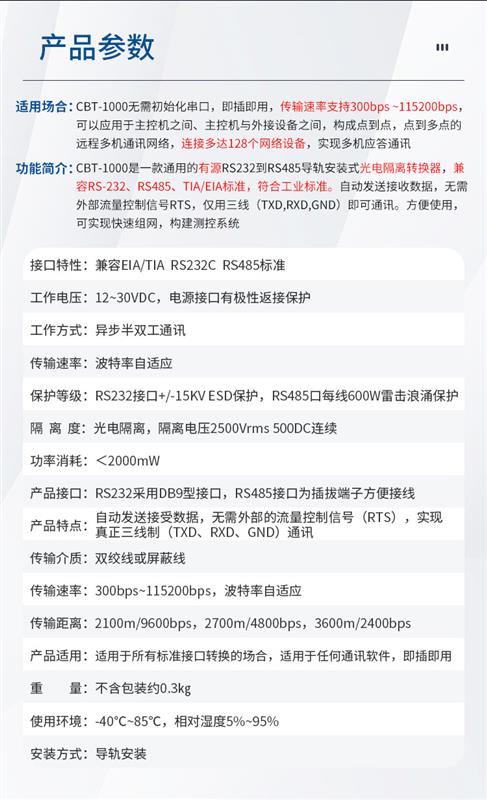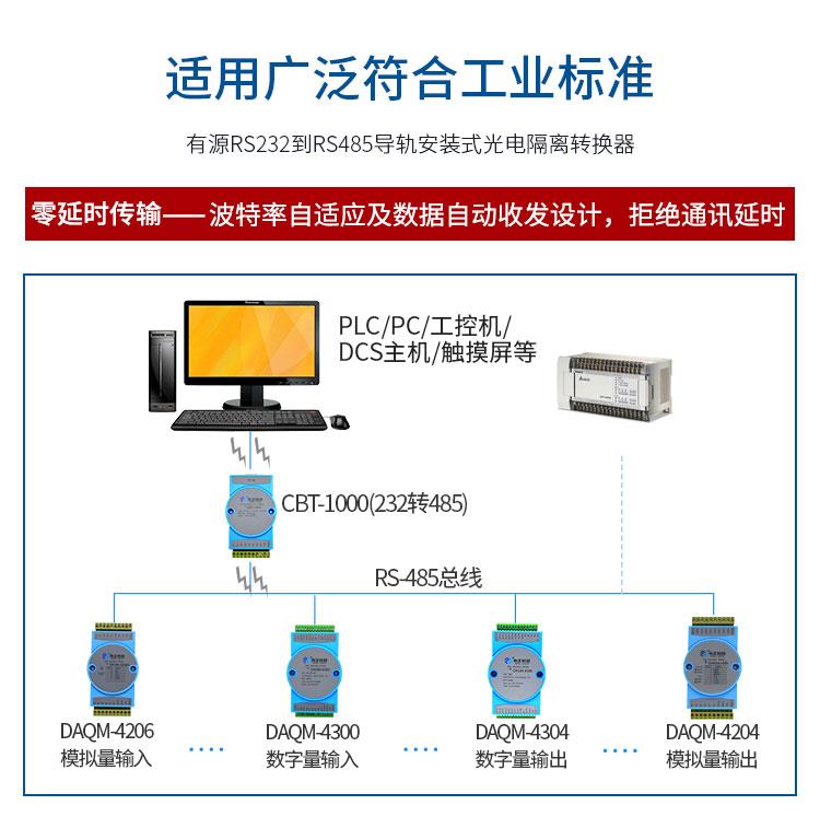 CBT-1000 是一款通用的有源 RS232 到 RS485 導(dǎo)軌安裝式光電隔離轉(zhuǎn)換器,兼容 RS-232、RS485、TIA/EIA 標(biāo)準(zhǔn),符合工業(yè)標(biāo)準(zhǔn)。自動(dòng)發(fā)送接收數(shù)據(jù),無需外部流量控制信號 RTS,僅用三線(TXD、RXD、GND)即可通訊。方便使用,可實(shí)現(xiàn)快速組網(wǎng),構(gòu)建測控系統(tǒng)。