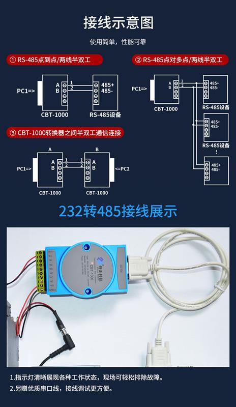 CBT-1000 無需初始化串口,即插即用,傳輸速率支持 300bps-115200bps,可以應(yīng)用于主控機(jī)之間、主控機(jī)與外接設(shè)備之間,構(gòu)成點(diǎn)到點(diǎn),點(diǎn)到多點(diǎn)的遠(yuǎn)程多機(jī)通訊網(wǎng)絡(luò),連接多達(dá)128 個(gè)網(wǎng)絡(luò)設(shè)備,實(shí)現(xiàn)多機(jī)應(yīng)答通訊。