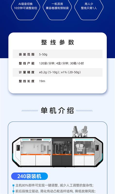 金旺智能AI語音切換磁懸浮袋裝線,袋裝機、裝盒機、裝箱機,整線