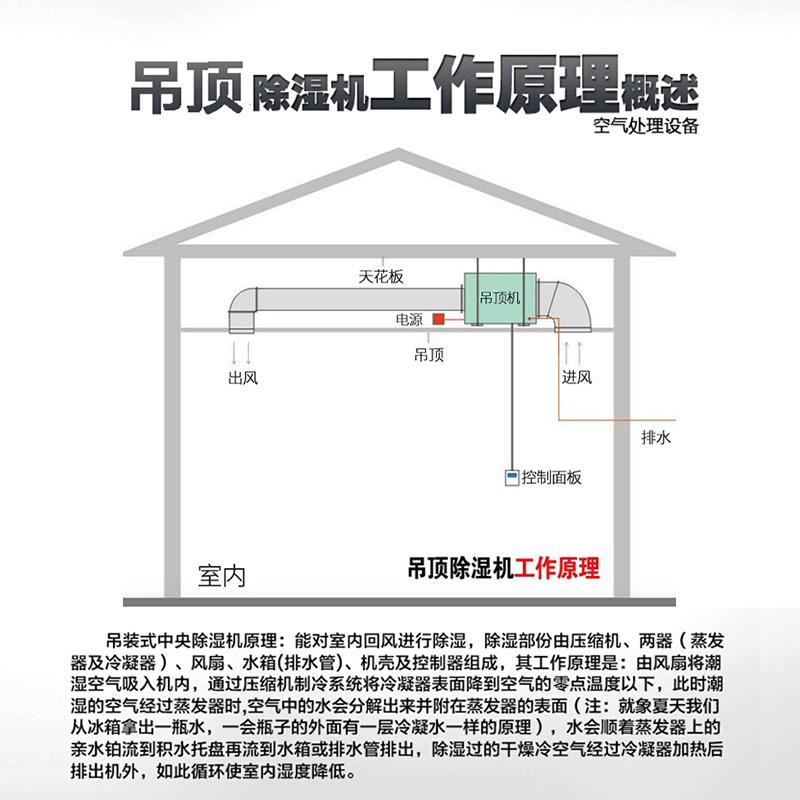 管道除濕機(jī)是將含水量高的空氣進(jìn)入機(jī)器內(nèi)部進(jìn)行處理,通過制冷或吸附方式將其中的水分凝結(jié)成液態(tài),然后將干燥的空氣排出,從而達(dá)到除濕的效果。根據(jù)不同的除濕原理,管道除濕機(jī)分為制冷式和吸附式兩種。