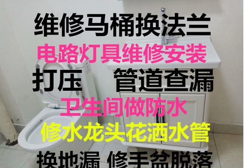 修理閥門漏水。 面盆、馬桶、浴缸、水斗排水管漏水維修更換。)廚房衛(wèi)生間、浴缸、漏滲水;水斗、 面盆、馬桶上水軟管漏水維修更換;馬桶水箱漏水配件維修更換。 安裝維修PPR管、PVC管、鋁塑管、鍍鋅管、不銹鋼管、銅水管焊接。 水龍頭更換、維修安裝;蓮蓬頭維修更換;浴霸、排氣扇維修。 承接PPR管、PVC管、鋁塑管、鍍鋅管、不銹鋼管及上水維修及更新、修理閥門漏水