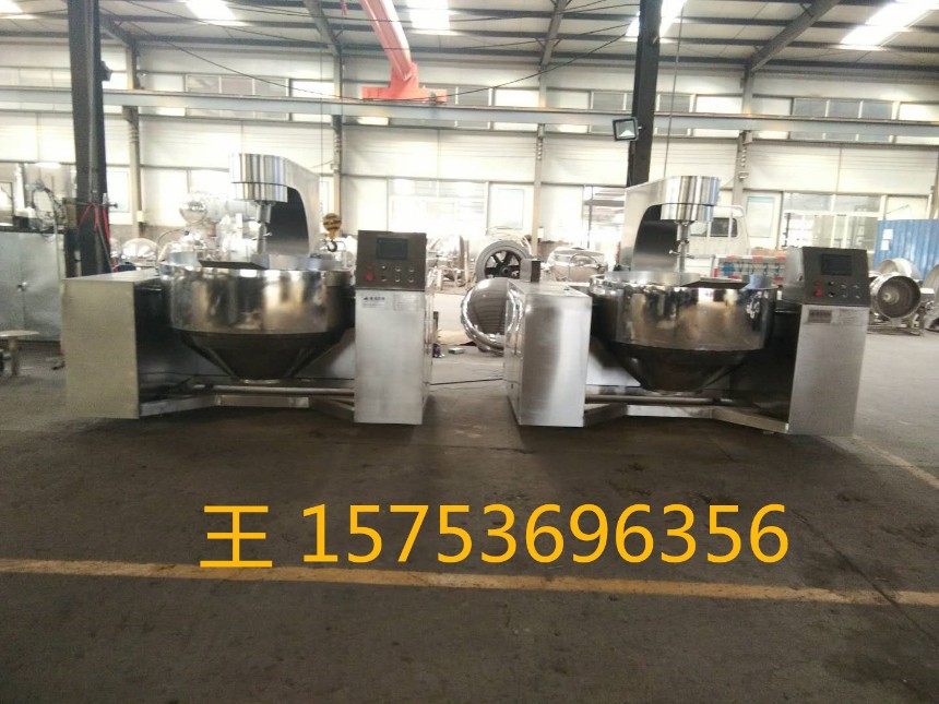 高粘度行星炒鍋 全自動(dòng)行星炒鍋是應(yīng)用到醬料加工炒制自動(dòng)化加工設(shè)備,與傳統(tǒng)人工炒料相比自動(dòng)火鍋炒料機(jī)可以實(shí)現(xiàn)溫度可控,自動(dòng)炒制,定時(shí)升溫,自動(dòng)出料,刮底攪拌,避免糊鍋等優(yōu)勢(shì),炒料的口感品質(zhì)均勻,可自動(dòng)連續(xù)生產(chǎn)等特點(diǎn),與傳統(tǒng)的人工炒制想對(duì)比無(wú)論是是口感以及速度質(zhì)量都得到了很大的提升。自動(dòng)攪拌、自動(dòng)炒制、溫度可調(diào)設(shè)計(jì)的多頭攪拌槳葉,攪拌片采用高強(qiáng)度的聚四氟乙烯制成,耐磨耐高溫、無(wú)毒,符合食品生產(chǎn)要求。設(shè)備內(nèi)外鍋體及表面接觸部分均采用優(yōu)質(zhì)304不銹鋼制造,易于清洗,符合食品衛(wèi)生要求。刮板與鍋體的貼合度高,刮底更徹底,不容易產(chǎn)生糊鍋現(xiàn)象??烧{(diào)整攪拌速度,并且自轉(zhuǎn)與公轉(zhuǎn)同步按比率運(yùn)行,能增強(qiáng)獨(dú)特的炒制效果,攪拌槳、鍋體、翻鍋采用互鎖設(shè)計(jì)保證了操作人員的安全。用于肉類(lèi)加工、生產(chǎn)香菇醬、方便面醬包、火鍋底料、辣椒醬、餡料加工、制糖及化工制藥等加熱領(lǐng)域;火鍋底料、辣椒醬生產(chǎn)設(shè)備,高粘度行星炒鍋可實(shí)現(xiàn)醬料、調(diào)味料的自動(dòng)化連續(xù)生產(chǎn)。其主要特點(diǎn)是采用燃?xì)饧訜嵩?,使醬料完全達(dá)到“炸”“炒”效果,故口味純香獨(dú)到,卓而不群,溫控自動(dòng)化可以很精確地掌握火候,環(huán)保節(jié)能均勻,此技術(shù)占國(guó)內(nèi)領(lǐng)先地位??梢宰苑胶涂蓛A式,可炒制各種醬料和顆粒狀物料??商峁┫愎结u、辣椒醬、火鍋底料自動(dòng)生產(chǎn)流水線,可實(shí)現(xiàn)原料處理、醬料炒制、罐裝、包裝等連續(xù)生產(chǎn)。本機(jī)具有微電腦控溫系統(tǒng),到達(dá)設(shè)定溫度后自動(dòng)報(bào)警并停止加熱,同時(shí)本機(jī)具有雙重控溫裝置,確保不糊鍋不結(jié)焦。本機(jī)又名炒醬鍋,熬糖鍋,餡料攪拌機(jī),等多種用途,適應(yīng)多種行業(yè)領(lǐng)域。304不銹鋼材質(zhì),品質(zhì)保證。