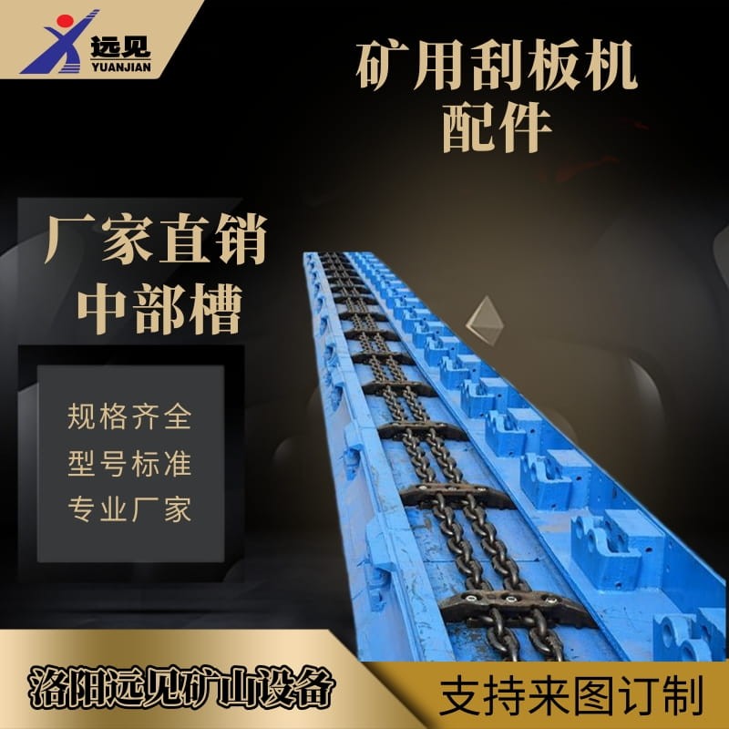 中部槽屬于刮板輸送機(jī)用配件,是刮板輸送機(jī)的機(jī)身,綜采刮板機(jī)中部槽由中板、槽幫、封底板、軌座和聯(lián)接板等組成,上槽運煤下槽供刮板鏈返程用。