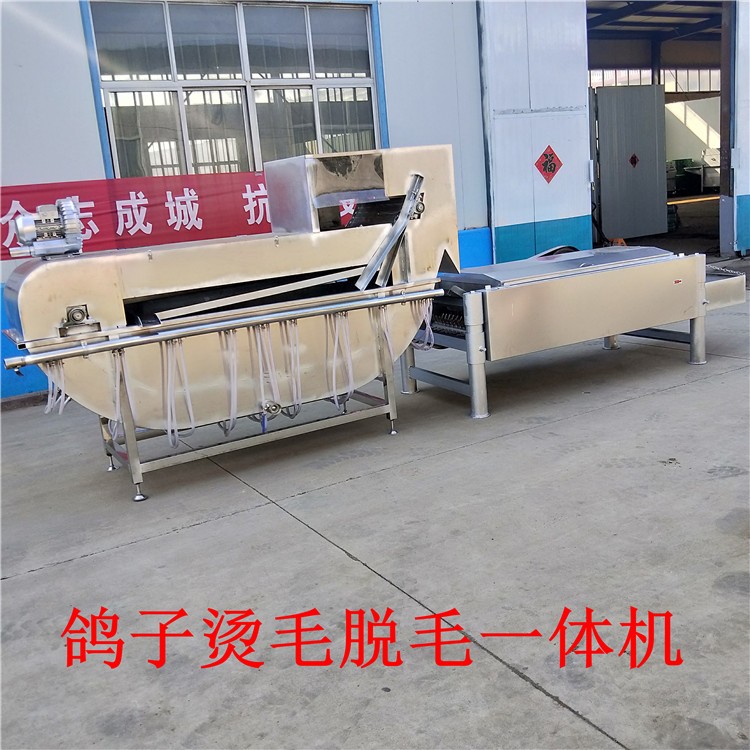 鴿子船式燙毛脫毛一體機(jī),設(shè)備是專用于鴿子用的全自動(dòng)燙毛脫毛一體機(jī)。設(shè)備可以自動(dòng)控制燙毛時(shí)間,并且能夠自動(dòng)脫毛。將殺好后的鴿子放進(jìn)投放口,經(jīng)過(guò)瀝血后,通過(guò)傳送鏈板將鴿子傳送至燙池,燙池不用氣缸控制燙毛機(jī)出料時(shí)間,燙毛完成后自己出來(lái),通過(guò)鏈板傳送至脫毛機(jī)。
