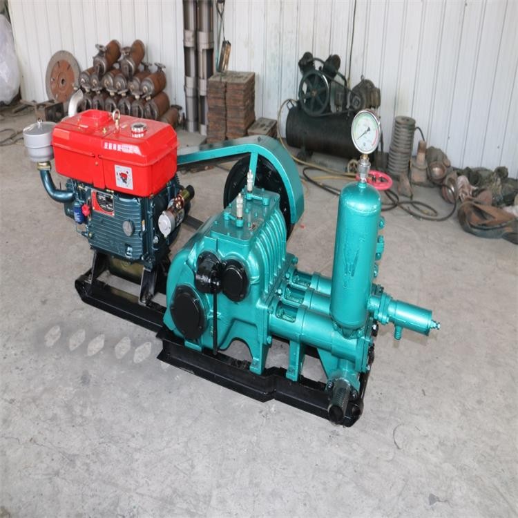 排量和孔深根據(jù)用途隨意調(diào)節(jié),深可和1500米鉆機(jī)配套使用,也可用于水泥漿灌注。BW型泥漿泵是一種臥式三缸往復(fù)泥漿泵。