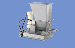 | 產(chǎn)品描述 通過靜態(tài)秤稱量完整的給料系統(tǒng)(料倉、給料機(jī)和散狀物料)及通過變速電機(jī)或電振機(jī)控制散關(guān)物料的卸料流量。 物料(通過螺旋、振動(dòng)管或槽)從系統(tǒng)卸下,將按每個(gè)單位時(shí)間(dv/dt)測(cè)量的"失重"與所需給料量(預(yù)設(shè)值)進(jìn)行比較,實(shí)際(測(cè)量)的流量與期望的(預(yù)設(shè))流量之間的差異會(huì)通過給料控制器發(fā)生糾正信號(hào),該控制器能自動(dòng)調(diào)節(jié)給料速度,從而在沒有過程滯后的情況下保持精確的給料量。 當(dāng)料倉中測(cè)量的重量達(dá)到料倉低料位(重新加料)時(shí),控制器將給料系統(tǒng)按容積給料進(jìn)行控制,然后料倉快速重新裝料(手動(dòng)或自動(dòng)),失重控制器重新動(dòng)作。 在批稱量失重系統(tǒng)中,設(shè)計(jì)與連續(xù)失重系統(tǒng)相似,然而,給料(批量) 循環(huán)最終重量的精度要比實(shí)際的給料量控制更高。 控制器通過向變速驅(qū)動(dòng)器提供高給料信號(hào)以完成快速給料,然后轉(zhuǎn)換到低給料控制信號(hào)用于在批量結(jié)束時(shí)精確控制。 |