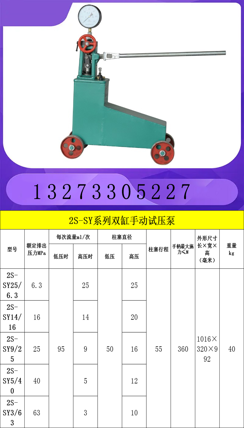 (歡迎來(lái)電了解詳情——1-3-2-7-3-3-0-5-2-2-7)我廠研制生產(chǎn)的3D-SY750系列電動(dòng)試壓泵可用于各類壓力容器、鍋爐、管件等一切需作壓力爆破試驗(yàn)和強(qiáng)度試驗(yàn)的場(chǎng)所,根據(jù)需要可鎖定試驗(yàn)壓力值,并能進(jìn)行自動(dòng)保壓。泵的輸送介質(zhì)一般為常溫清水,也可使用乳化液、防銹水及粘度與水相近的中性油品。配上清洗附件,該機(jī)還可作為清洗機(jī)使用。是我國(guó)目前現(xiàn)行二缸、四缸電動(dòng)試壓泵的換代產(chǎn)品。該產(chǎn)品具有體積小、結(jié)構(gòu)緊湊、運(yùn)行平穩(wěn)、安全可靠、功能完備、流量大、效率高等特點(diǎn),而且適用范圍廣、配套性強(qiáng)、操作簡(jiǎn)單。