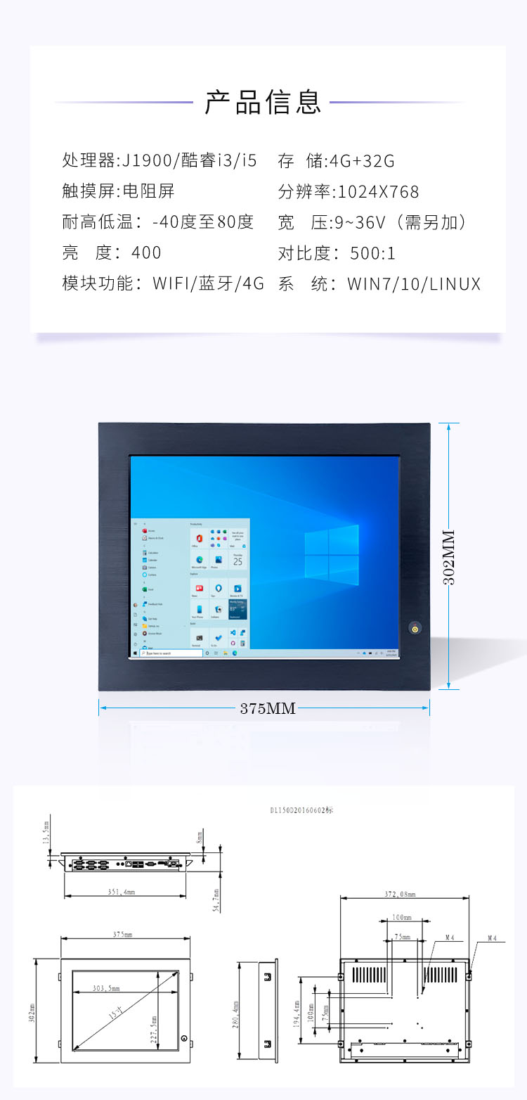 5.電腦供電寬壓在9V-30V之間,出廠配有12V5A電源適配器.