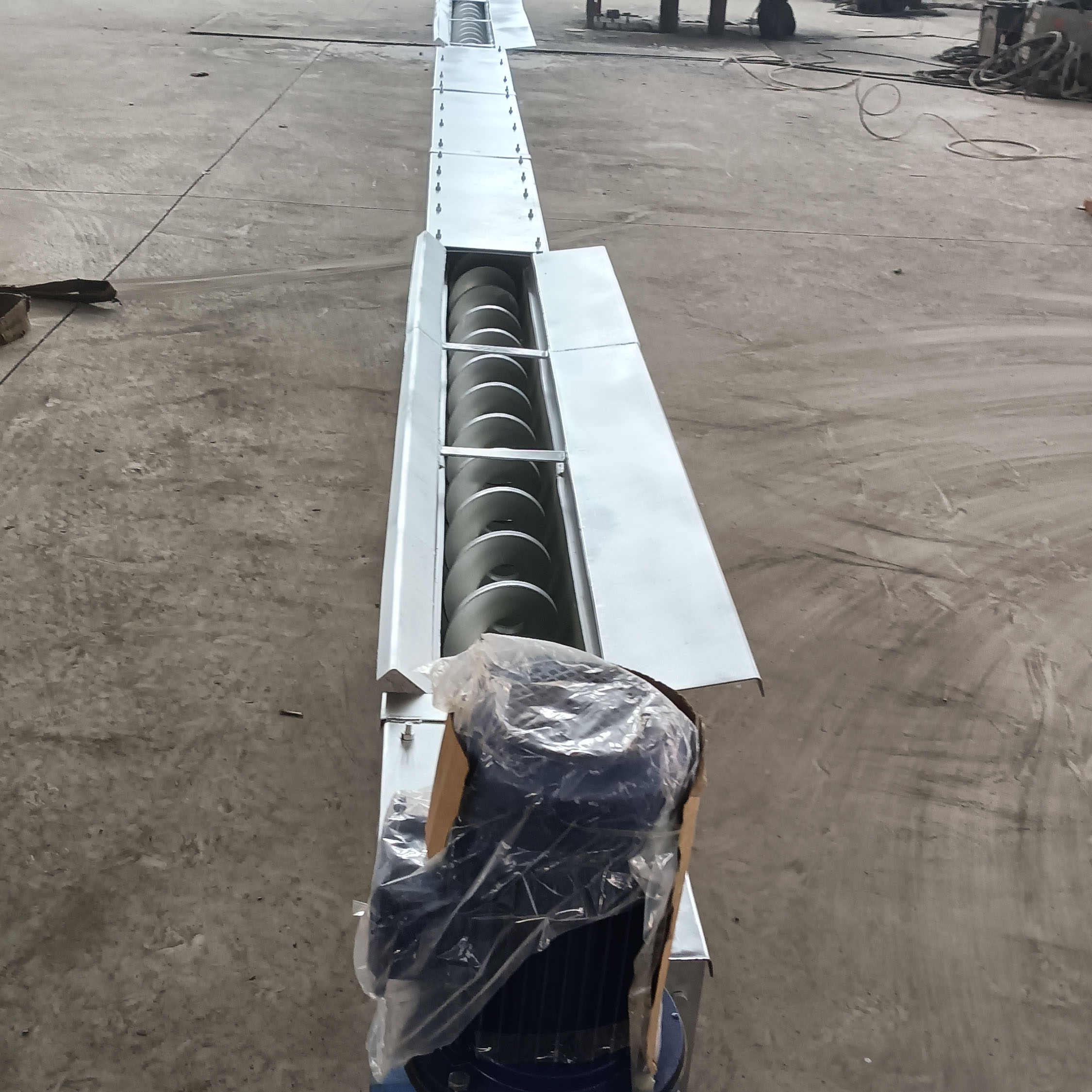 行輸送工作,頭部及尾部軸承移至殼體外,吊軸承采用滑動軸承設(shè)有防塵密封裝置,軸瓦一般采用粉末冶金,輸送水泥采用毛氈軸瓦,吊軸和螺旋軸采用滑塊連接。