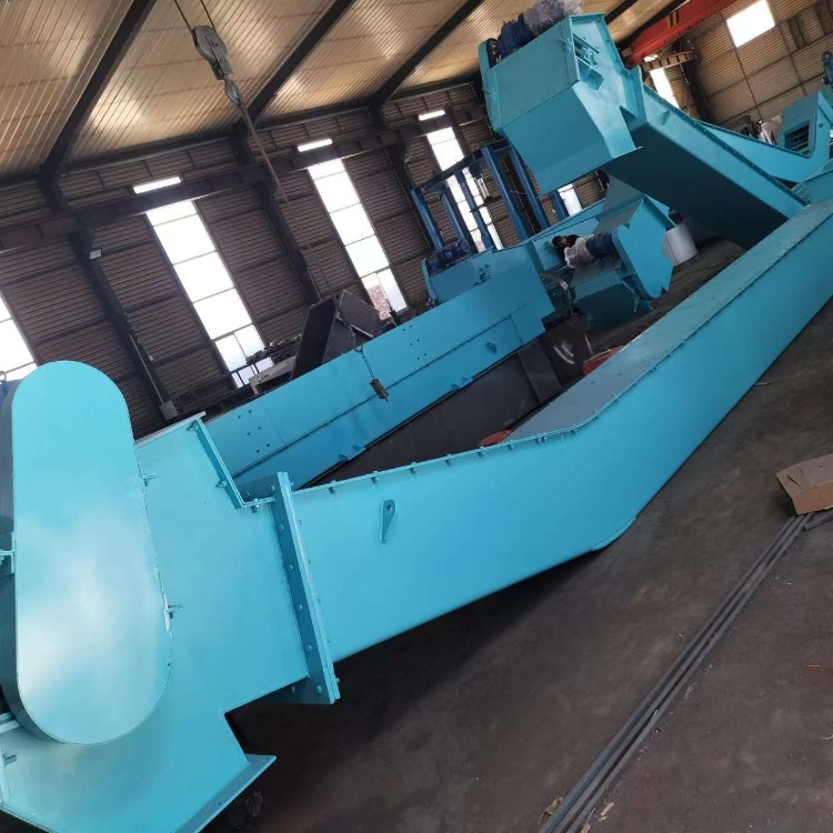 等的承受件,將刮板固定在鏈條上(組成刮板鏈),作為牽引構(gòu)件。當(dāng)機(jī)頭傳動部啟動后,帶動機(jī)頭軸上的鏈輪旋轉(zhuǎn),使刮板鏈循環(huán)運(yùn)行帶動物料沿著溜槽移動,直至到機(jī)頭部卸載。刮板鏈繞過鏈輪作無級閉合循環(huán)運(yùn)行,完成物料的輸送。