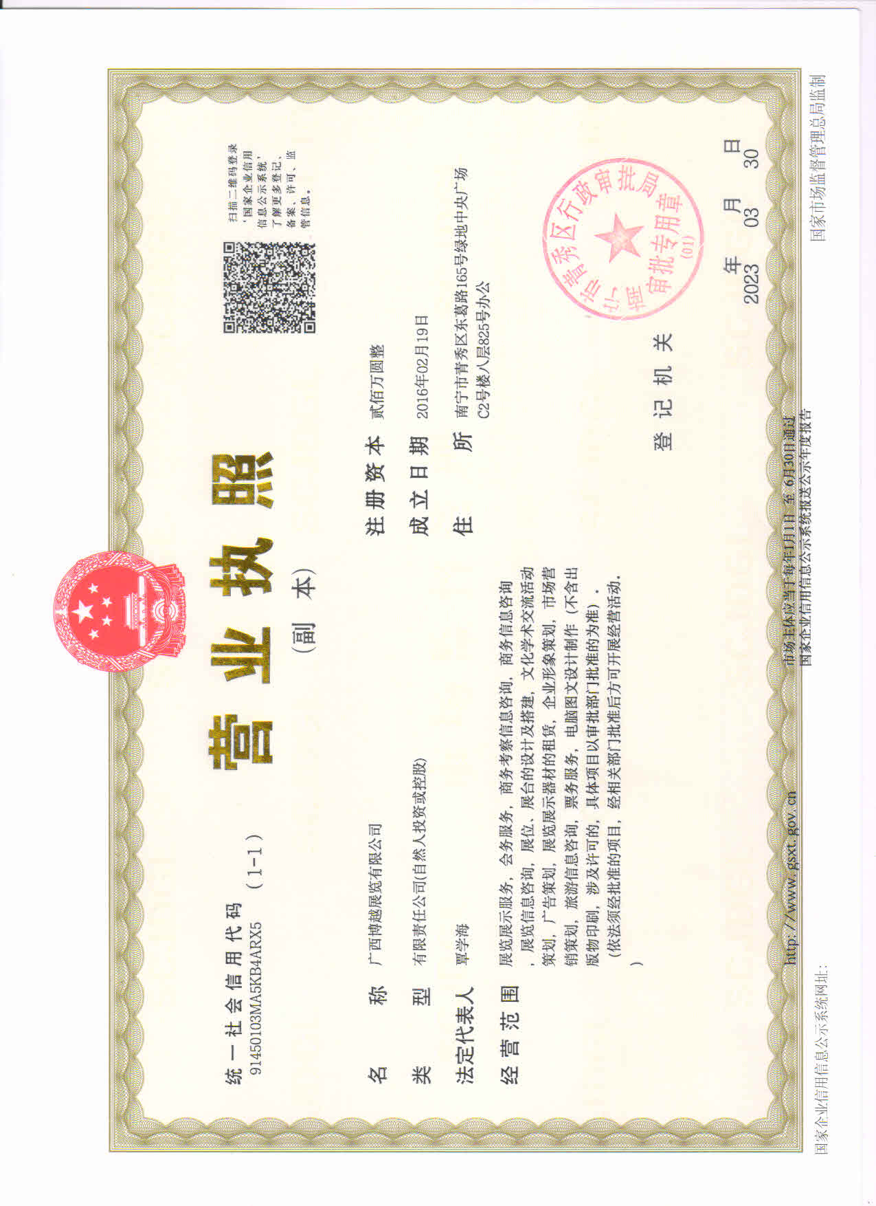 注冊(cè)資金:200 萬(wàn)元成立時(shí)間: