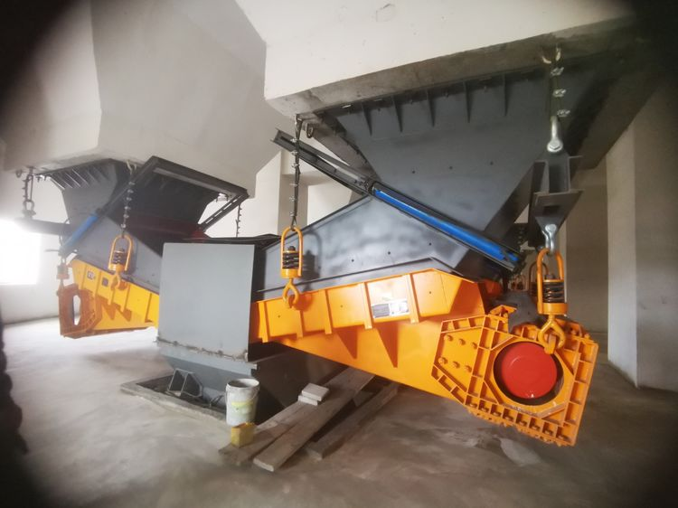雙質(zhì)體振動給料機,是鶴壁市煤化機械有限責任公司,90年代末開發(fā)研制的專利產(chǎn)品,其靈魂技術(shù)就是“剪切橡膠彈簧”技術(shù),以下簡稱“橡膠塊”,有其自身的老化期。當橡膠老化以后,失去了本身彈性和剪切能力。振動電機激振力無法經(jīng)過橡膠塊完美傳送至槽體,所以會造成給料量越來越小。