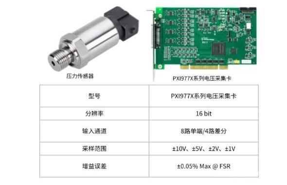 數(shù)據(jù)采集卡選擇:PXI977X系列電壓采集卡:此系列數(shù)據(jù)采集卡以其多通道同步采集的優(yōu)勢(shì),能夠高精度采集壓力傳感器輸出的電壓信號(hào),滿足大多數(shù)壓力測(cè)量需求。