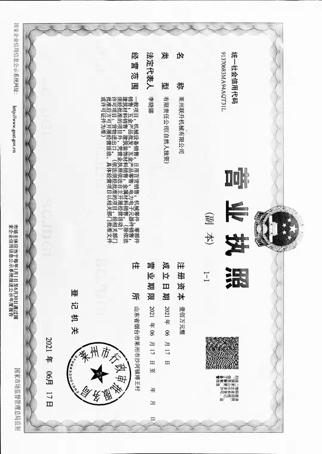 注冊資金:100 萬元成立時間: