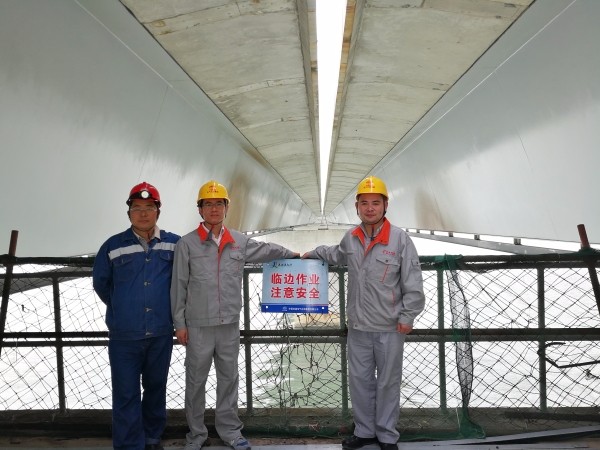 在現(xiàn)場施工、檢測方面,遠東更是用心備至。受環(huán)境影響,橋梁在冬夏兩季熱脹冷縮程度最大會達到1.5米左右,電線電纜的安裝需充分考慮伸縮性。經(jīng)過多次現(xiàn)場實地勘察,遠東與此次主橋負責電氣的安裝的中鐵建多次探討,最終確認按蛇形“S”敷設,保證充足的預留長度,巧妙地應對了環(huán)境弊端。