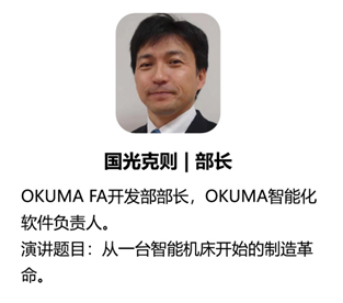 14:30-15:15 | 從一臺智能機床開始的制造革命 | 國光克則 | 大隈株式會社FA系統(tǒng)本部FA開發(fā)部部長 | |