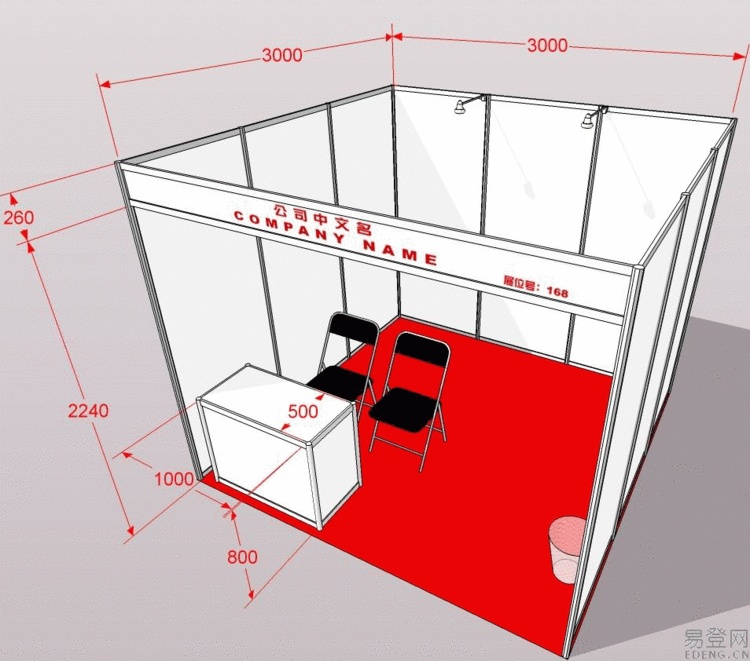 3mx3m=9m普通標展:14800RMB/個:雙面開口標展:15800RMB/個:國際展商:18800R MB元/個:標準展位包括地毯、三面圍板、公司名稱楣板、咨詢桌一張、椅子兩把,射燈兩蓋、電源插座 特殊用電請事先說明,展館另行收費)室內(nèi)空地: