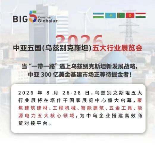 近日,備受矚目的2026中亞五國(guó)(烏茲別克斯坦)五大行業(yè)展覽會(huì)正式開(kāi)啟全球報(bào)名通道,這場(chǎng)盛會(huì)將在烏茲別克斯坦首都塔什干盛大舉行,本次博覽會(huì)聚焦中亞五國(guó)建筑業(yè)與能源業(yè)兩大核心議題,精準(zhǔn)對(duì)接市場(chǎng)需求。預(yù)計(jì)將集結(jié)全球500余家頂尖展商,展覽面積超25000平方米,特設(shè):建筑建材及裝飾材料展區(qū)、建筑服務(wù)創(chuàng)新科技展區(qū)、工程機(jī)械、建材設(shè)備展區(qū)、建筑工具與五金配件展區(qū)、能源、電力與照明展區(qū)等五大核心領(lǐng)域,此布局旨在為烏茲別克斯坦正在推進(jìn)的城市化、能源現(xiàn)代化和基礎(chǔ)設(shè)施建設(shè),提供從基礎(chǔ)材料到尖端科技的一站式解決方案。